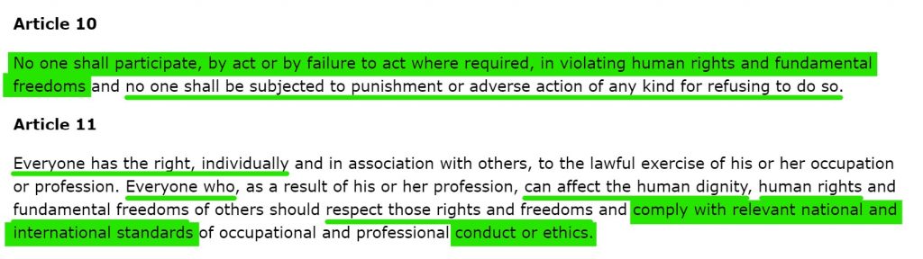 My intrinsic, inalienable, foundational, guaranteed human rights and fundamental freedoms to my life, my liberty, my association, my free choice and consent, ( plus many others) can be found in the Constitution Act 1982 ( the supreme laws of Canada ), The International Bill of Human Rights and the Declaration on the Right and Responsibility of Individuals, Groups and Organs of Society to Promote and Protect Universally Recognized Human Rights and Fundamental Freedoms. ( plus others )