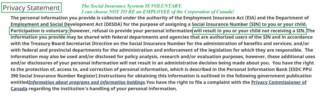 Any Act of Parliament that forces me into an association or removes my liberty, my free choice and/or my free consent is a violation of the supreme laws of Canada and is of “No Force or Effect”.