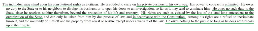 ~ My life, ~ My liberty, ~ My associations, ~ My free choice, ~ My free consent, ~ My natural wealth and resources, ~ My property, ~ My travel,
